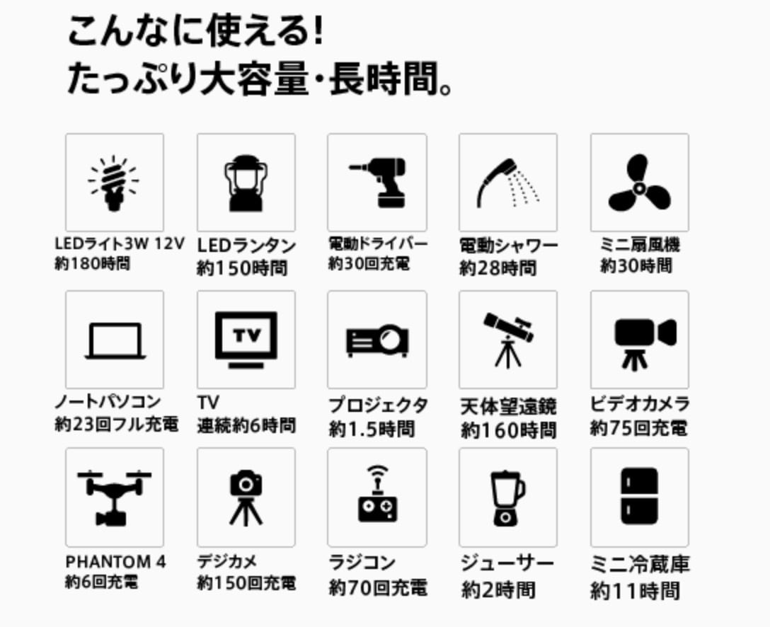 緊急時の電源確保、あらゆる電源に対応している大容量ポータブル電源です。